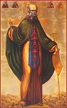 San Sabas, nacido en Capadocia en el año 439, a los ocho años de edad entró a un monasterio cerca de Cesárea y, después, atraído por los Santos Lugares, se fue a habitar una gruta junto al torrente del Cedrón, donde no había, en la Cuaresma, otro alimento fuera de la Santa Eucaristía, y donde muy pronto tuvo numerosos discípulos. Un día, un león le dejó su caverna. Fue a combatir a los eutiquianos en Constantinopla, y fue llevado, no obstante su pobre vestimenta, ante Anastasio II. Más tarde, el emperador Justiniano, habiendo ido a verlo, fue abandonado por él no bien San Sabas oyó llamar para el oficio divino. Murió en el año 532.