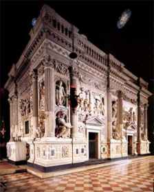 Llegó un tiempo que muchos peregrinos iban a este santuario y el Papa Clemente VII mandó que se cerrara la puerta original y se construyeran tres puertas, ya que solo había un puerta y las personas se peleaban para entrar y salir. Solo había un problema y era que nadie le había pedido permiso a la Virgen María para las alteraciones. Cuando el arquitecto cogió su martillo para comenzar, su mano se marchitó y comenzó a temblar.