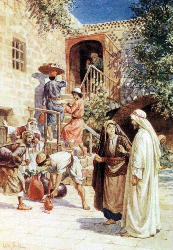 – Credo U Continuación del Santo Evangelio según San Lucas (II, 1-11) – En aquel tiempo: celebrábanse unas bodas en Caná de Galilea y estaba allí la Madre de Jesús. Fue también convidado Jesús con sus discípulos a las bodas. Y llegando a faltar vino, la Madre de Jesús le di ce: No tienen vino. Respondióle Jesús: Mujer ¿qué nos va a ti ya mí? aún no ha llegado mi.hora; Dijo su madre a los que servían: Haced cuanto él os dijere. Había allí seis tinajas de piedra destinadas a las purificaciones judáicas cabiendo en cada una dos o tres cántaros. Y Jesús dijo: Llenad las tinajas de agua. Y las llenaron hasta arriba. Y Jesús les dice: Sacad ahora, y llevad al maestresala. Y lo hicieron así. Y luego que gustó el maestresala el agua hecha vino, como no saabía de donde era (aunque los sirvientes lo sabían, porque habían sacado el agua), llamó al esposo y le dijo: todos sirven al principio el buen vino: y después que los convidados han bebido bien, entonces sacan el más flojo. Mas tú reservaste el buen vino para lo último. Este fue el primer milagro que hizo Jesús en Galilea. Y manifestó su gloria y creyeron en él sus discípulos. – Credo