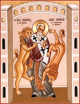 San Ignacio, obispo de Antioquía, tenía en los labios, sin cesar, el nombre de Jesús. Este amor por Jesús encendió su deseo de asemejársele. Fue condenado a ser comido por los leones. Soy, dice el santo, trigo de dios que debe ser molido por los dientes de las fieras para ser pan de Cristo. Murió pronunciando el nombre de Jesús, el año 110.