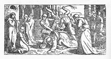 Como había derramado tanta sangre, estaban pegadas a su cuerpo llagado: vienen los verdugos y las arrancan con tanta fiereza, que llevan tras sí la corona, y hasta pedazos de carne que se le habían pegado…