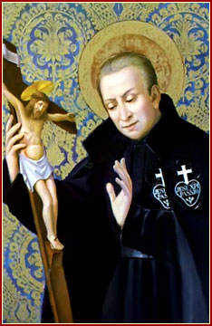 San Pablo de la Cruz mostró, desde su tierna infancia, un amor ardiente por Jesús crucificado. Ya sacerdote, obtuvo de Benedicto XIII permiso para constituir una comunidad destinada a honrar muy especialmente la Pasión del Salvador, y se retiró al Monte Argentaro, en la Toscana. Allí puso los cimientos de la congregaci6n de los Pasionistas. La Santísima Virgen en persona indicóle el hábito que quería tomasen los nuevos religiosos; un manto negro, adornado con las insignias de la Pasi6n. Tuvo el con suelo de ver a su orden muy floreciente, y murió en Roma en el año 1775. Fue beatificado y en seguida canonizado por Pío IX.