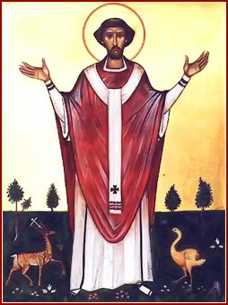 San Huberto, hijo de un duque de Aquitania y descendiente de Clodoveo, abandonó Eboín y fue a ofrecerse a Pipino de Heristal, duque de Austrasia. Hombre de mundo y gran cazador, un día vio una cruz luminosa entre los cuernos de un ciervo, en la floresta de Ardennes, y al mismo tiempo una voz celestial lo instó a convertirse y a ir a encontrar a San Lamberto, obispo de Maestrich. Hízolo así. Quedó viudo y se hizo ermitaño, fue en peregrinación a Roma, y finalmente, sucedió a San Lamberto. Con ardor infatigable trabajó por destruir el vicio y los restos de idolatría hasta en las florestas. Murió en el año 727, a edad muy avanzada, después de cerca de 20 años de episcopado. Es invocado eficazmente contra la rabia.