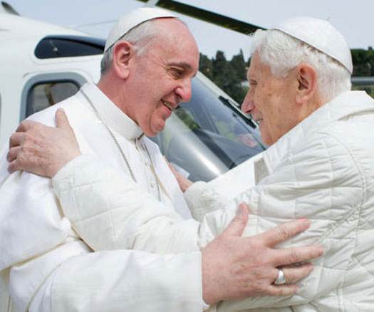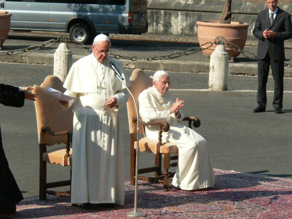 Solo dos cosas son seguras en este momento: que por primera vez en la historia hay Dos Papas en Roma, y que Benedicto XVI está más presente que nunca. Baste recordar unas de sus últimas palabras estando aún en la Sede de Pedro: “Ustedes estarán a mi lado, a pesar de que para el mundo yo permanezca oculto”: Benedicto XVI, Discurso al Clero Romano, 14 de Febrero de 2013.