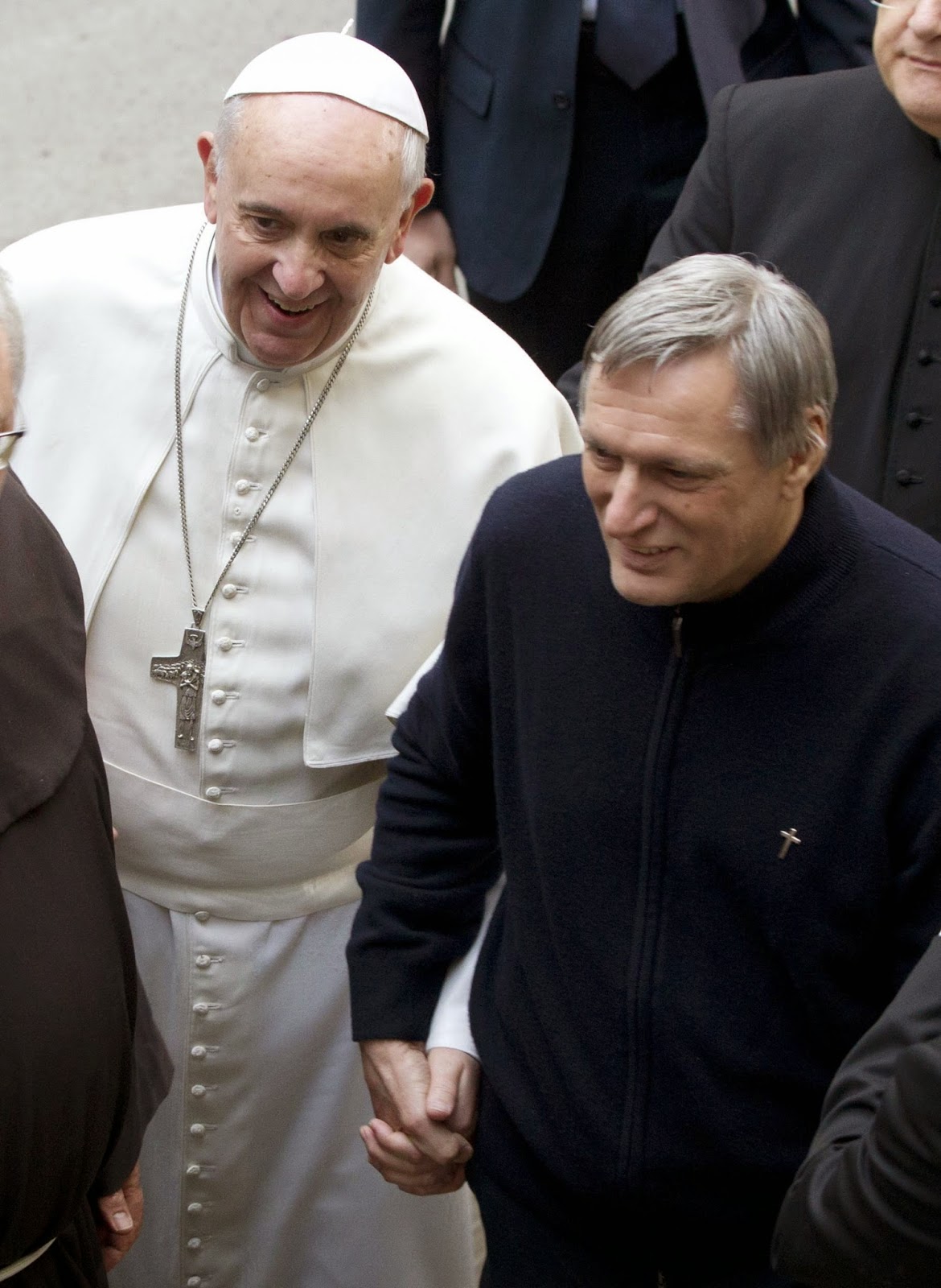 o inclusive el del padre Decimejorge, cura porteño campechano y muy humilde, inquilino de la Casa Santa Marta del Vaticano, besando las manos al sacerdote igualmente homosexualista Michele de Paolis (aquí),