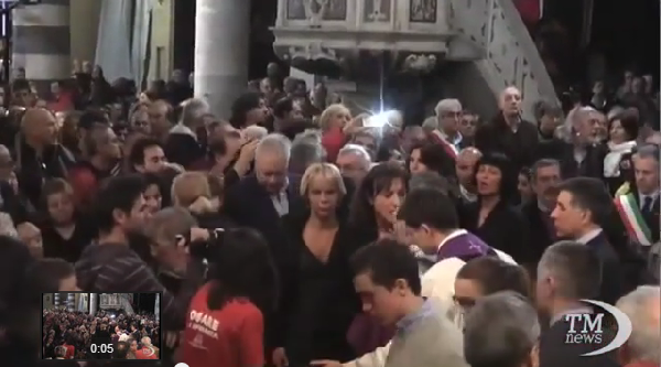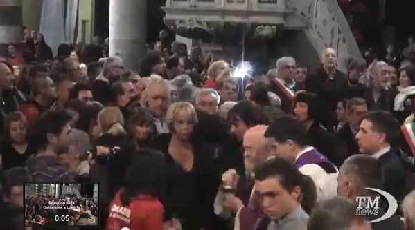 Además de las situaciones de irregularidad matrimonial, no hace falta ser profeta para atreverse a anticipar que en el próximo Sínodo se abordará igualmente la cuestión de las personas que reivindican la práctica del vicio contra natura. Varios hechos altamente simbólicos así lo sugieren, entre los que pueden mencionarse, además del ya legendario « ¿Quién soy yo para juzgar ? », lanzado por Francisco al concluir las JMJ de Río de Janeiro en su célebre conferencia de prensa aérea de regreso a Roma, los funerales de Don Gallo (aquí), famoso sacerdote comunista, adepto del aborto e incondicional de las reivindicaciones homosexualistas, celebrados en Génova por el cardenal Angelo Bagnasco, presidente de la Conferencia Episcopal Italiana, en mayo de 2013. Durante dicha celebración, el cardenal Bagnasco realizó un panegírico encendido del difunto militante de la causa sodomita, permitiendo que dos transexuales hicieran la apología de la ideología LGBT en la lectura de la « plegaria universal », durante la cual agradecieron al clérigo apóstata por haberlos ayudado a « sentirse creaturas trans-gender (sic) deseadas y amadas por Dios », y a los que finalmente él distribuyó personalmente la comunión, mancillando sacrílegamente las Santas Especies eucarísticas (aquí).