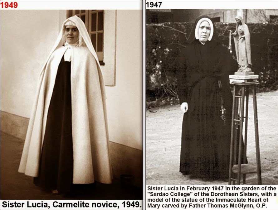 Con todo, nótese que aún hoy aparece como fecha de su profesión el 3 de octubre de 1928, lo cual simplemente no pudo haber ocurrido, ya que Lucía entró a la Orden Carmelita hasta 1948.