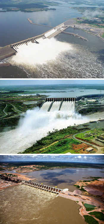 For the Bishops building power plants in Amazonia is criminal because they relocate some Indians from the flooded area – from top, Tucuruí, Belo Monte & Jirau