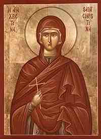 Santa Cristina demostró ya a la edad de doce años cuán a pecho tomaba los intereses de Jesucristo. Rompió los ídolos de su padre sin preocuparse por los castigos a que la exponía este acto de celo. Su padre la hizo azotar y abofetear brutalmente por sus sirvientes. Fue arrojada en una hoguera y salió de ella sana y salva; se le cortó la lengua, y siguió alabando a Dios. Murió finalmente, atravesada con flechas. Sus reliquias son veneradas en Palermo de Sicilia.