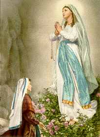 El jueves 11 de febrero de 1858, Bernardita había ido con su hermana y una amiga a la Gruta de Massabielle, al borde del río Gave, para recoger algo de leña. Cuando se estaba descalzando para meterse al agua y cruzar al torrente, oyó un ruido como de una ráfaga de viento, y levantando la cabeza hacia la gruta, vio a una Señora vestida de blanco, que llevaba un velo también de color blanco, una faja azul en la cintura y una rosa amarilla en cada pie. Bernardita hizo la señal de la cruz y rezó el rosario con la Señora. Al terminar de rezar, la Señora desapareció.