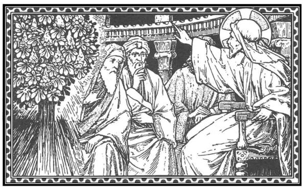 + – «Te digo, Pedro, que no cantará hoy el gallo antes que tres veces hayas negado conocerme.»